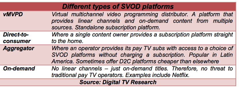 Simon Murray, Principal Analyst at Digital TV Research, said: “We forecast 77 million vMVPD subscribers by 2023, up from 21 million at end-2017. The US will contribute 28 million to the 2023 total, with India supplying 16 million.”