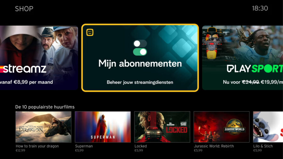 The operator’s upgraded interface introduces a unified experience, allowing viewers to browse live TV and streaming platforms such as GoPlay, Streamz and Disney+ from a single screen. Users can also manage subscriptions through a new “Shop” feature — enabling one-click activation or cancellation of services billed directly via Telenet, removing the need for multiple logins.
